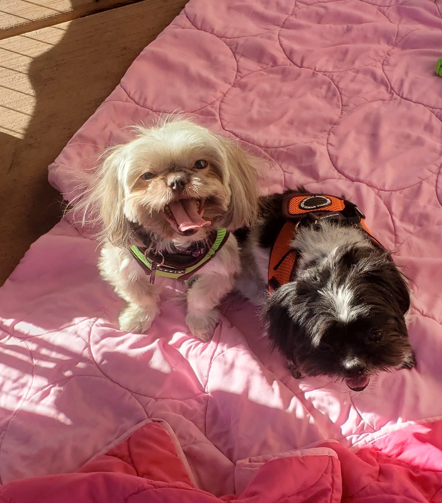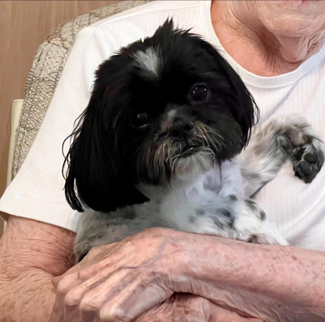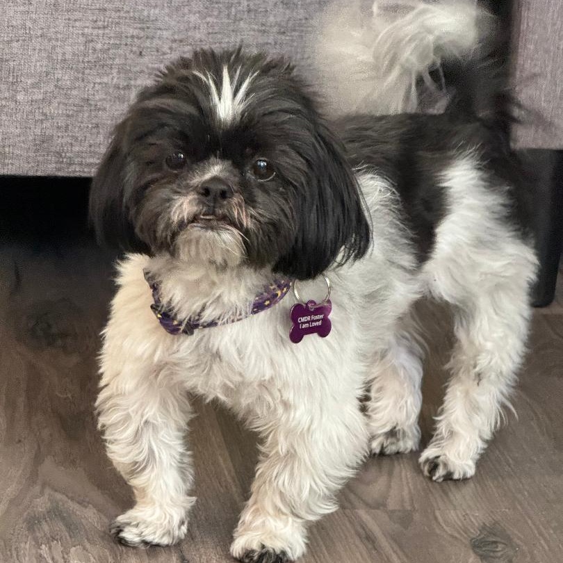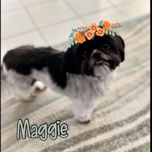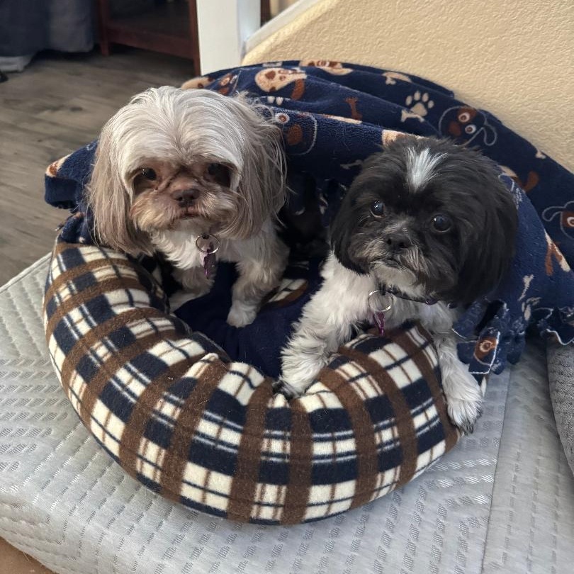 Maggie is a bonded girl 10 year old ( with Sadie listed separately), shy at first but will warm up to you. They love to snuggle together under their blankets and can spend the day on your lap. Maggie does well on a leash and can use a doggy door. Sadie hasn’t quite gotten the hang of the doggy door but will go do her business outside when prompted and will let you know when she’s ready to come back inside. Sadie is a talker and very calm tempered. They have never been placed in a crate in their foster home and have not had any potty accidents indoors. They get along with other small dogs in the home. Children 12 and older